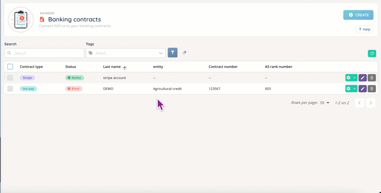 Once the contract is created, an automatic check will be performed: if the data entered correspond to an existing bank or Stripe contract, the contract will become active.