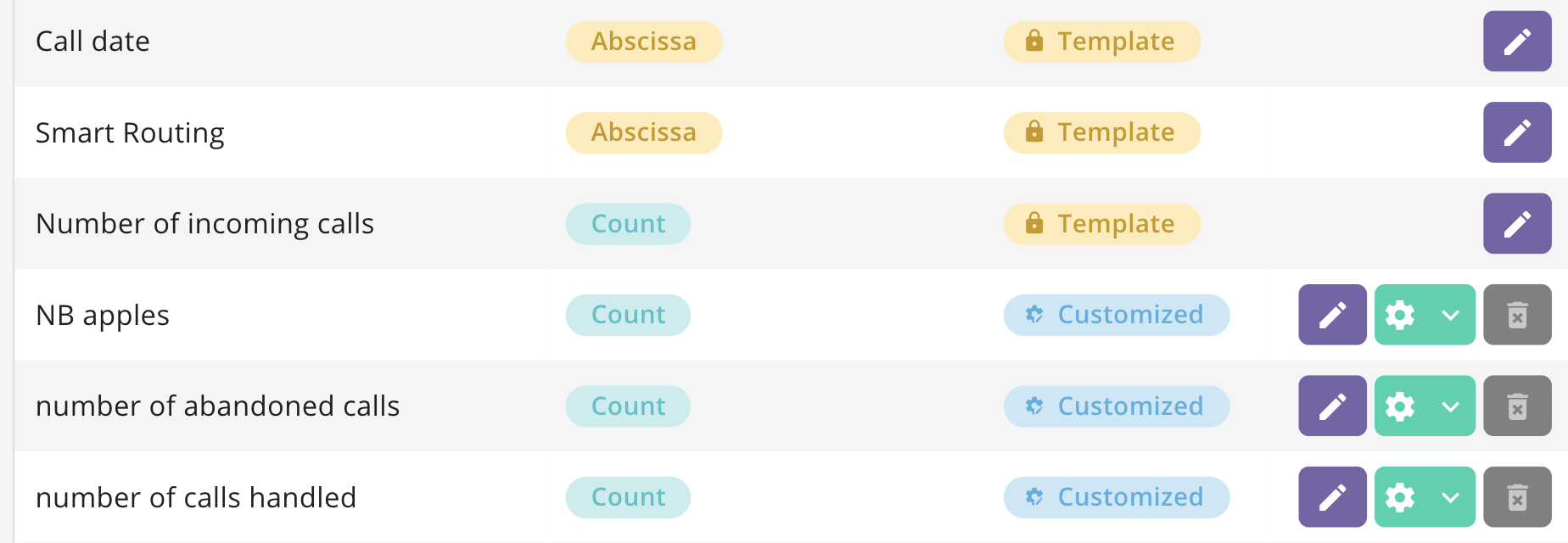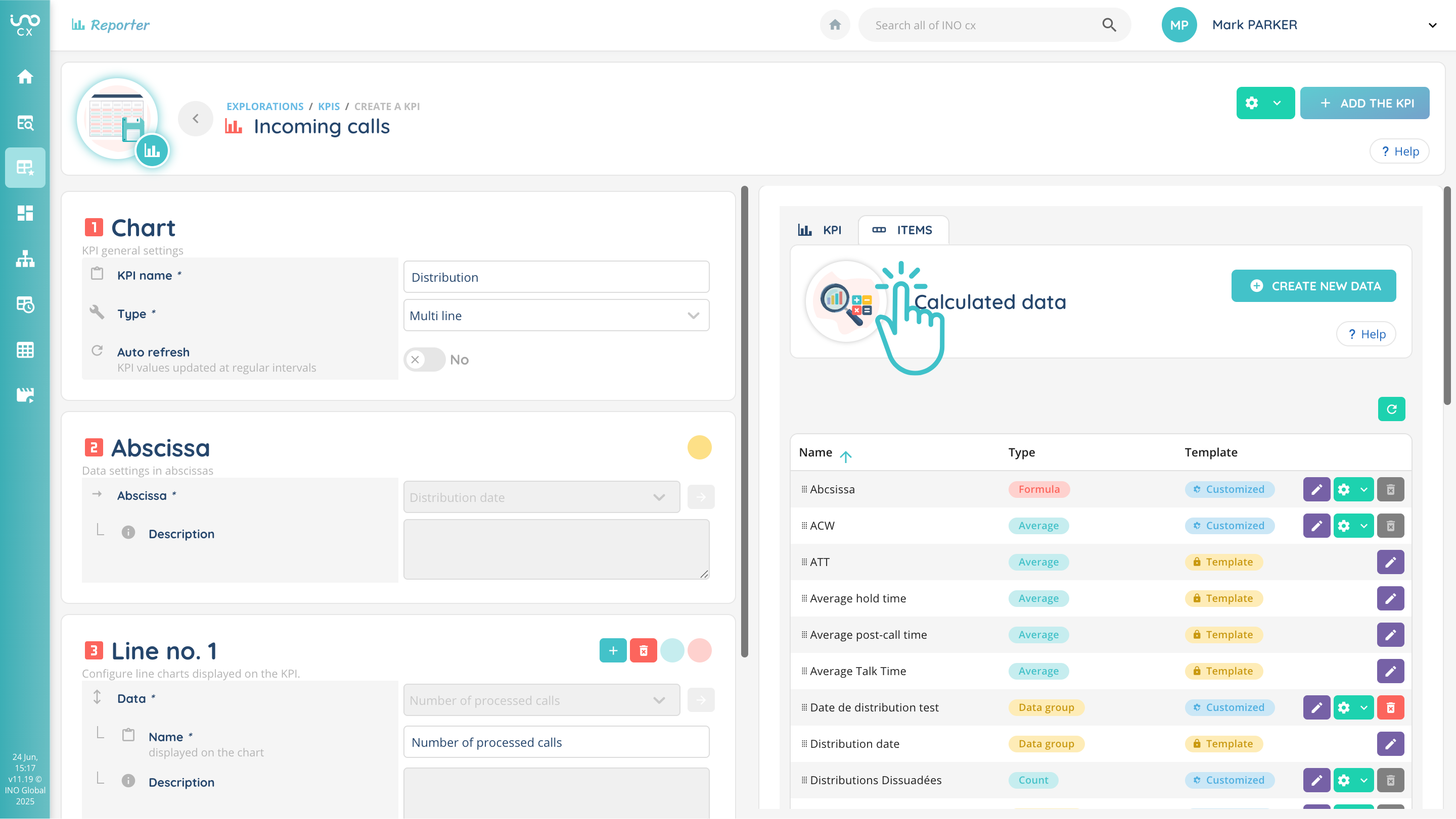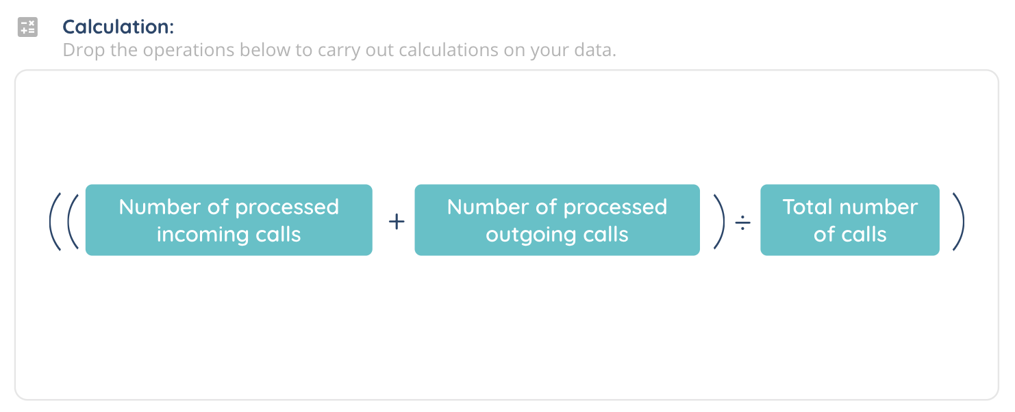 Simply drag and drop operators (addition, subtraction, multiplication, division) into the ‘Formula’ calculation zone, then add indicators (such as number of calls handled or average waiting time), to obtain a new composite indicator.