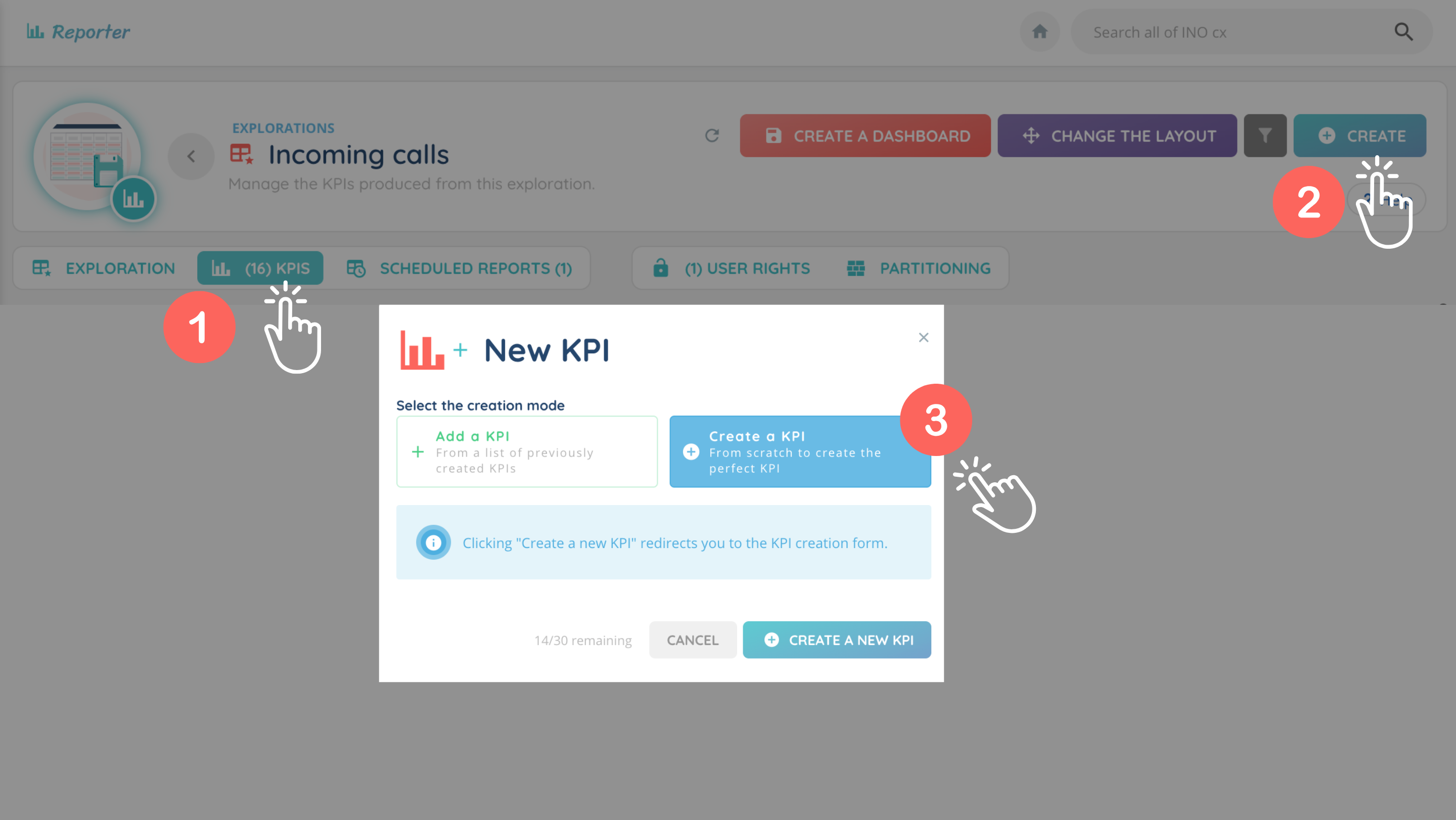 To access calculated data, you need to open an exploration, KPIs tab, then click ‘Create a KPI’.