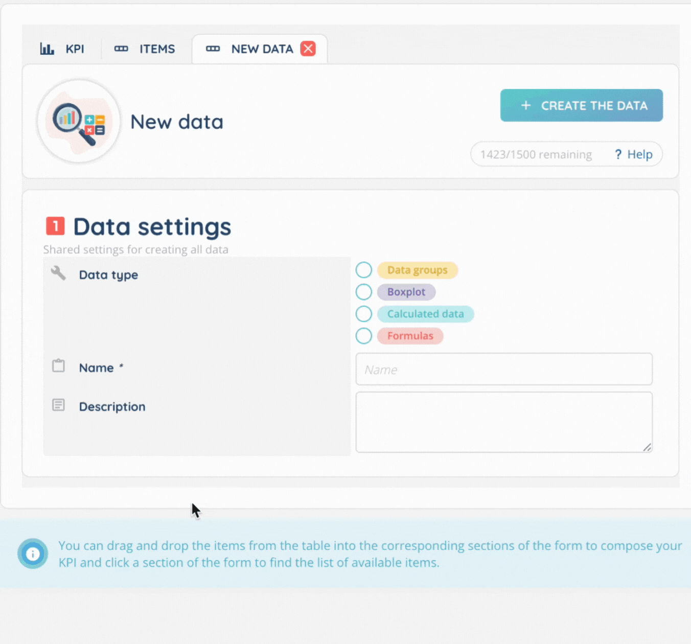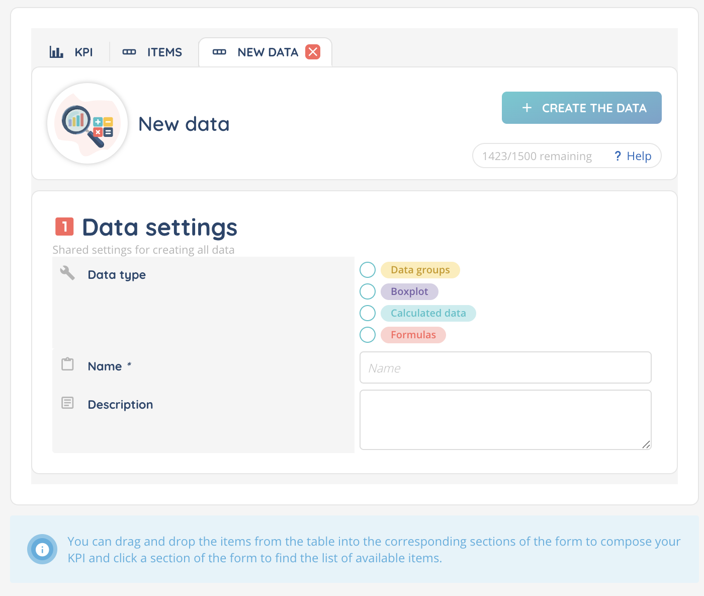 This data type, in red in the items table, allows you to create customized formulas from already calculated data.