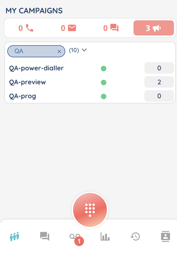 Voice campaigns allow advisors to manage and process outbound call campaigns directly from the Banner. From this interface, advisors can view pending targets, subscribe to voice campaigns, start outbound calls, and monitor campaign activity according to their permissions.
