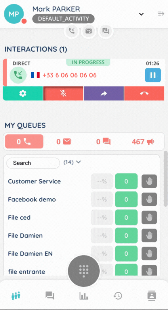 In the case of a call, you can choose between ‘transfer and hang up’ and ‘start the assisted transfer’.