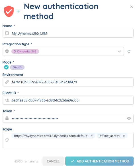 • https://{{domain}}.crm{{region}}.dynamics.com/.default (mandatory)