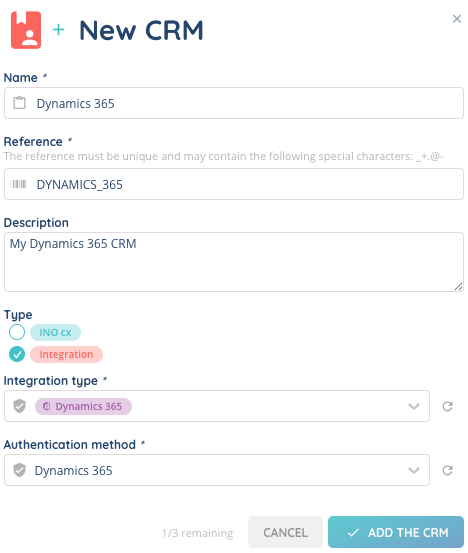 This article explains how to configure the Dynamics 365 integration in INO cx.