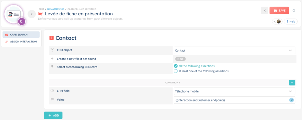 If the caller’s mobile number matches the mobile number of a Contact record in Dynamics 365, the CRM card will be presented to the advisor in the Banner during the interaction.