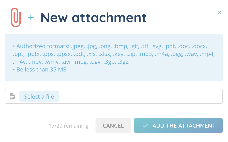 Note: make sure you respect the authorised formats and do not exceed the maximum size.