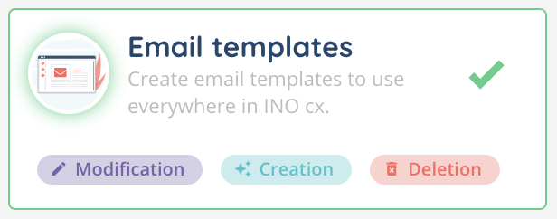 Email templates in INO cx allow you to create predefined messages, customizable with variables, to help agents save time, ensure consistent communication, and support both manual and automated email sending.