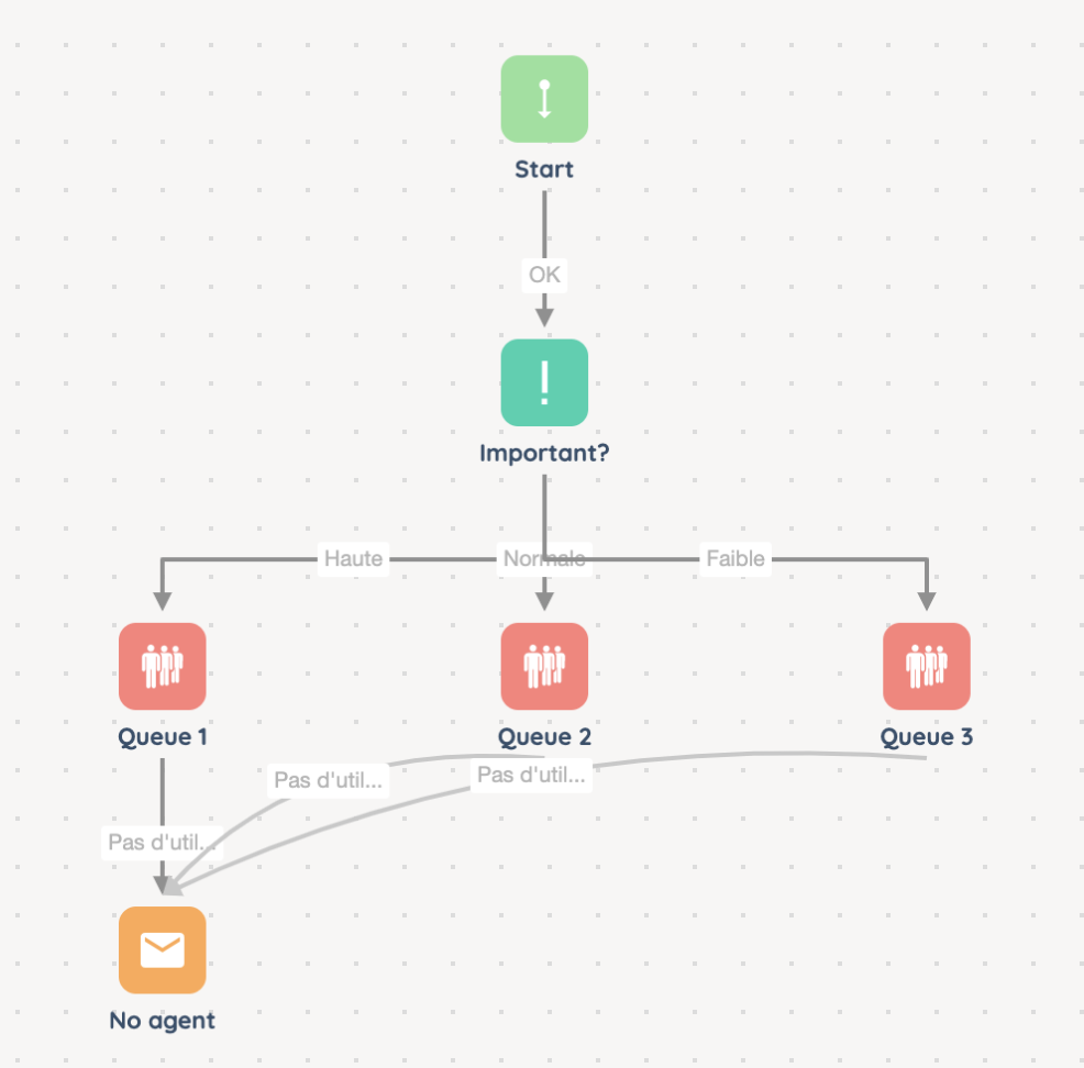 - Link your “Normal” queue to the “No agent” action, and choose the eponymous branch. That way, you will manage most of the possible outcomes.