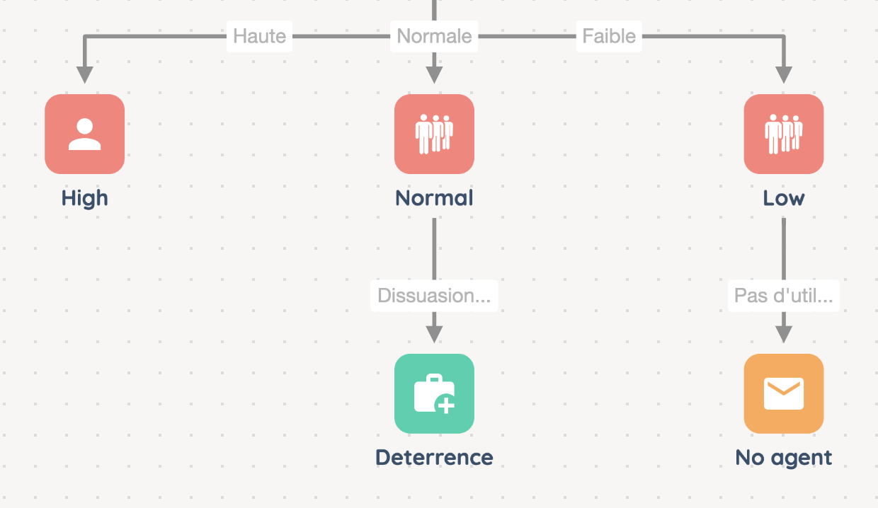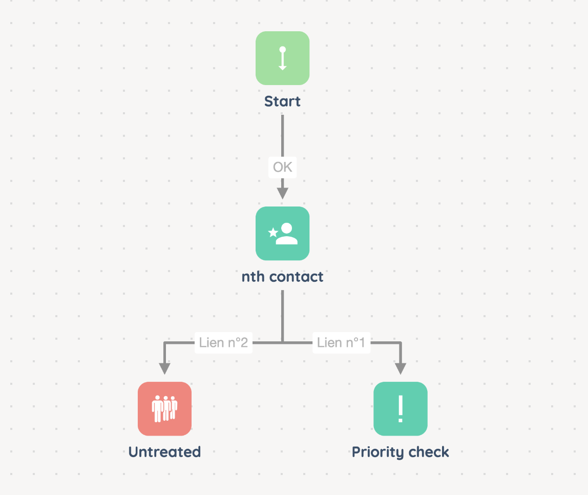 This action allows you to treat diffirently a customer who tries to contact you several times over a given period, to comply with the first contact resolution for example. You can adjust the criteria (have the emails been handled?), and the branches will then help you to redirect the client to a priority queue or a specific agent.