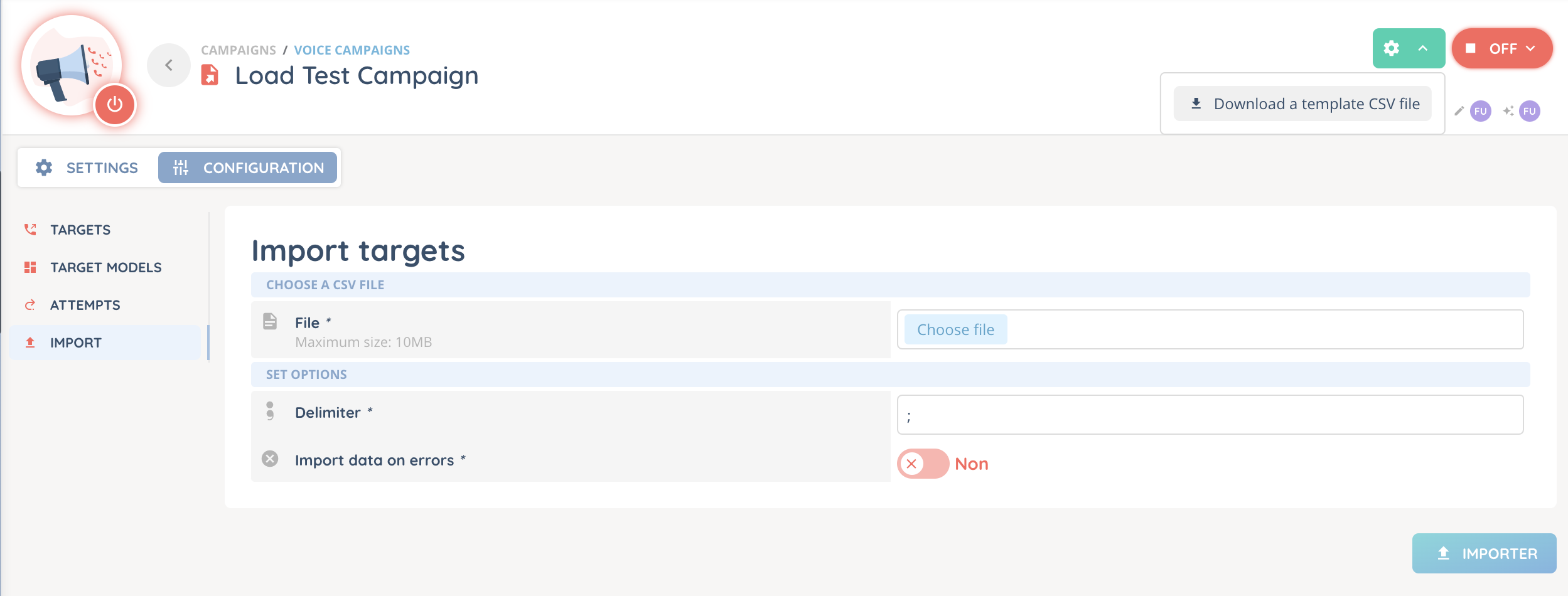 - Attempts: once your campaign has begun, you will be able to see the attempts results for all your targets here.