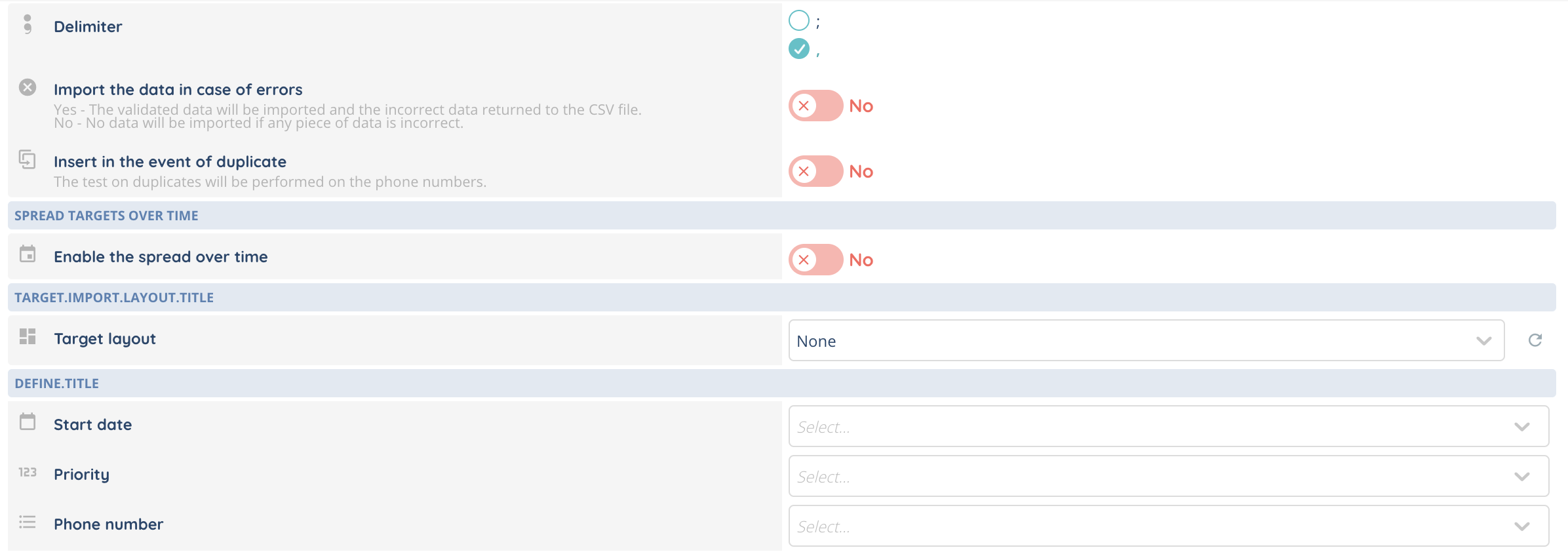 You can also choose the CSV file’s separator and filter your data when importing. Finally, you can save your settings and return to your import later with the “Save” button.