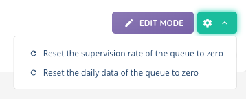 - The cogged wheel icon lets you reset the supervision rate or reset the daily data for the queue.