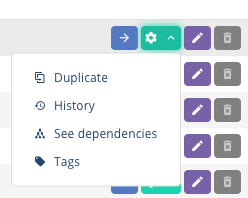 - The cogged wheel icon provides queue-level actions such as history, dependencies and tags, or duplicate queue.