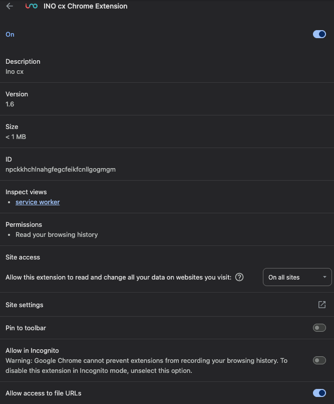 The INO CX Chrome Extension allows users to interact with phone numbers directly from web pages and connect seamlessly to the INO CX interface.