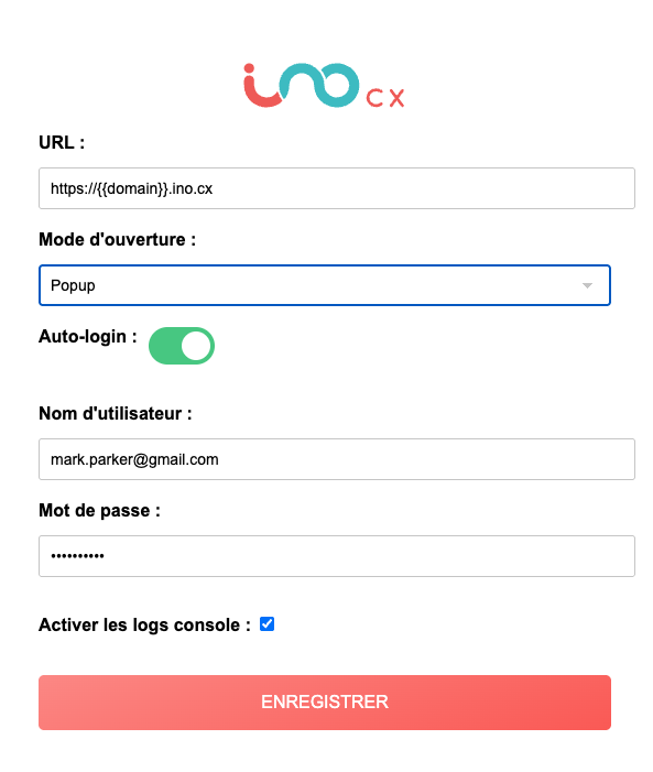 - Environment URL: Enter the URL of your INO cx environment.