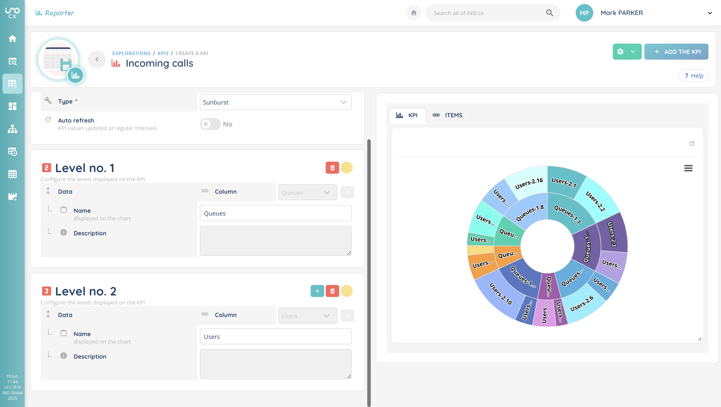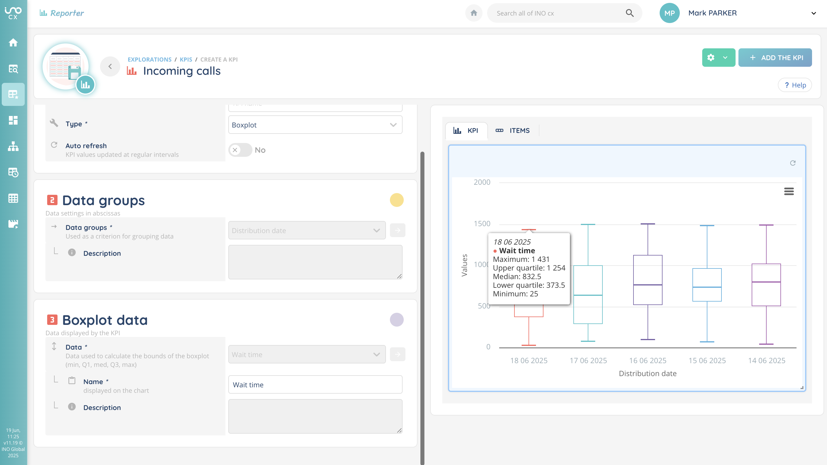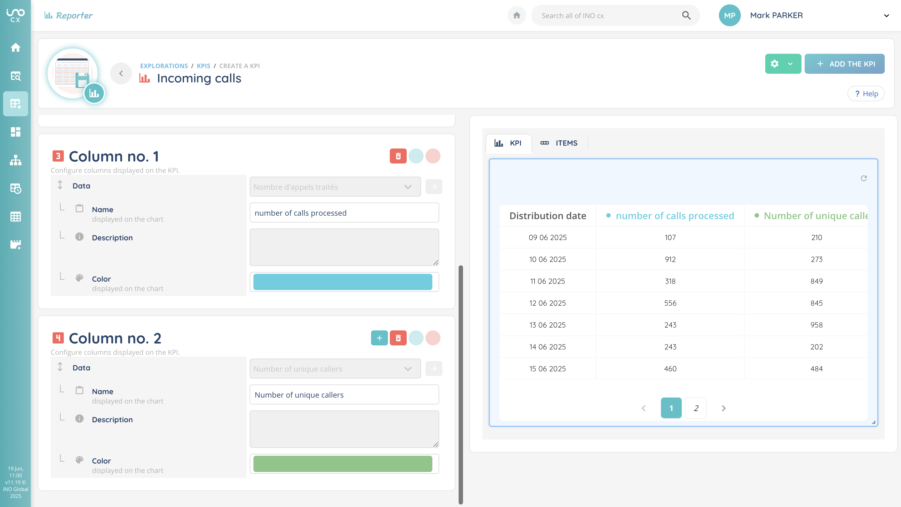 KPIs (Key Performance Indicators) are visual indicators that allow you to quickly interpret essential data from an exploration. They are used to measure performance: number of calls, average duration, quality of service, etc.