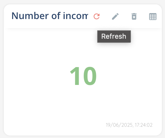 To manually refresh a KPI, click the refresh icon (circular arrow) located above the KPI tile.