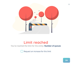 Note: Requests directly in the entity will only be possible once the limit has already been reached. A pop-up will open informing you that the limit has been reached. Click on the checkbox ten fill the fields to request a limit increase.