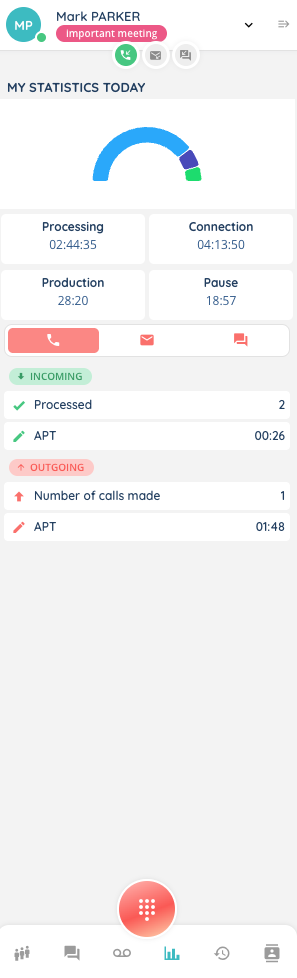 Data is reset every day, giving you an up-to-date view of your activity across all channels. This tab helps agents track their productivity and manage their performance during the day.