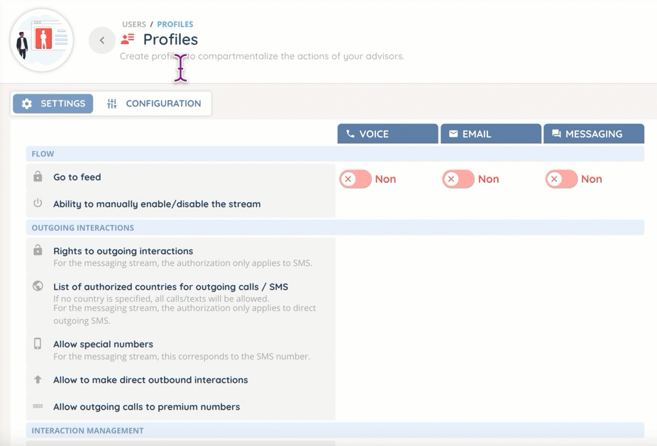 The mini-screen is where incoming interactions ( , , ) will be displayed, the presentation will depend on the channel as well as on the authorizations: refuse the call, transfer it, start a recording yourself, etc.