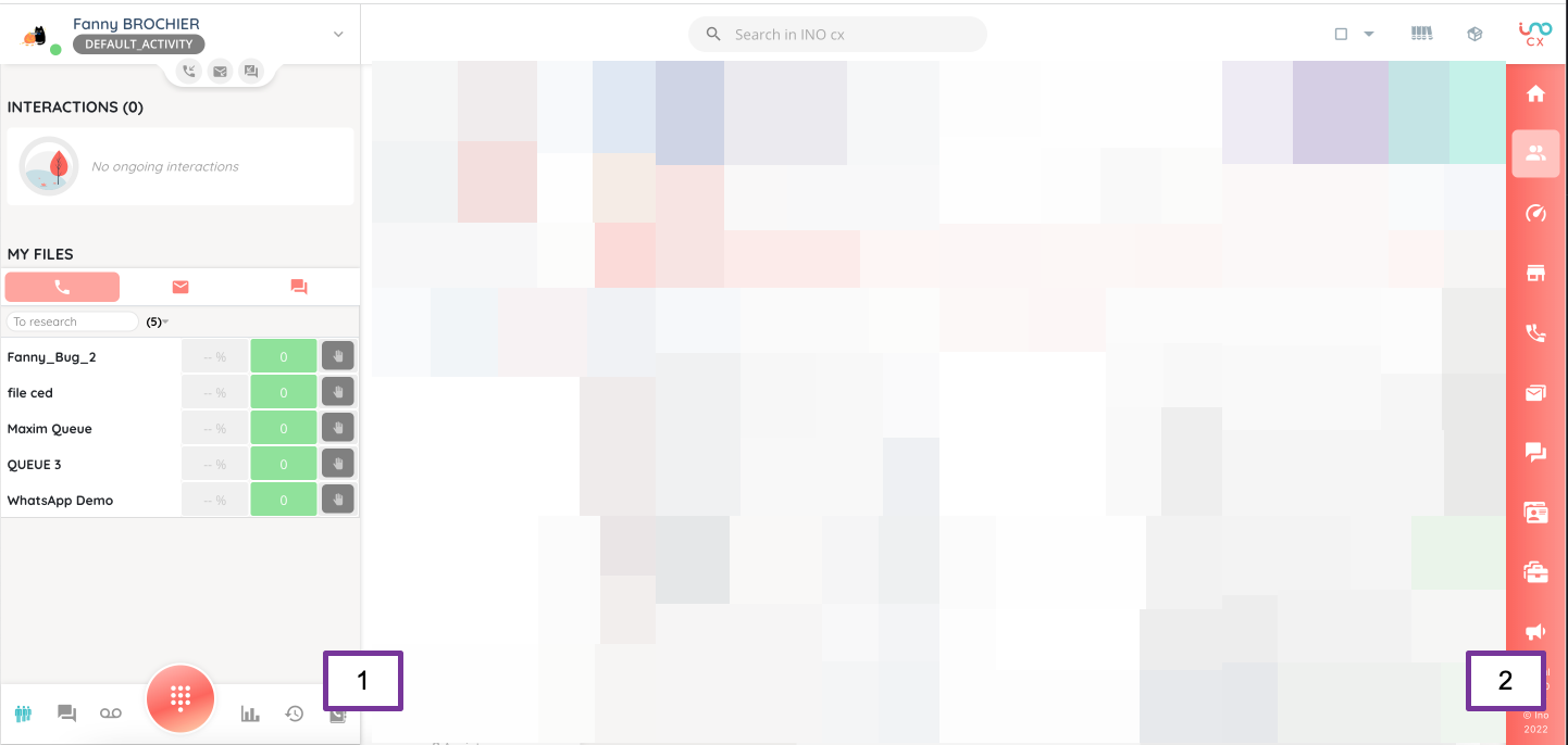 The mini-screen is where incoming interactions ( , , ) will be displayed, the presentation will depend on the channel as well as on the authorizations: refuse the call, transfer it, start a recording yourself, etc.