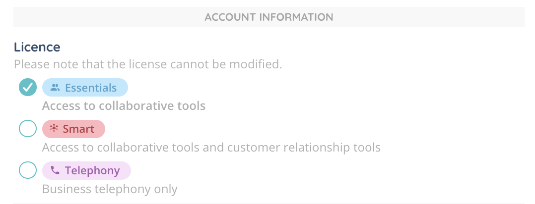 Two licenses will give you access to the Banner: Essentials and Smart. They are assigned to the user upon creation in the Maker and cannot be modified afterwards.