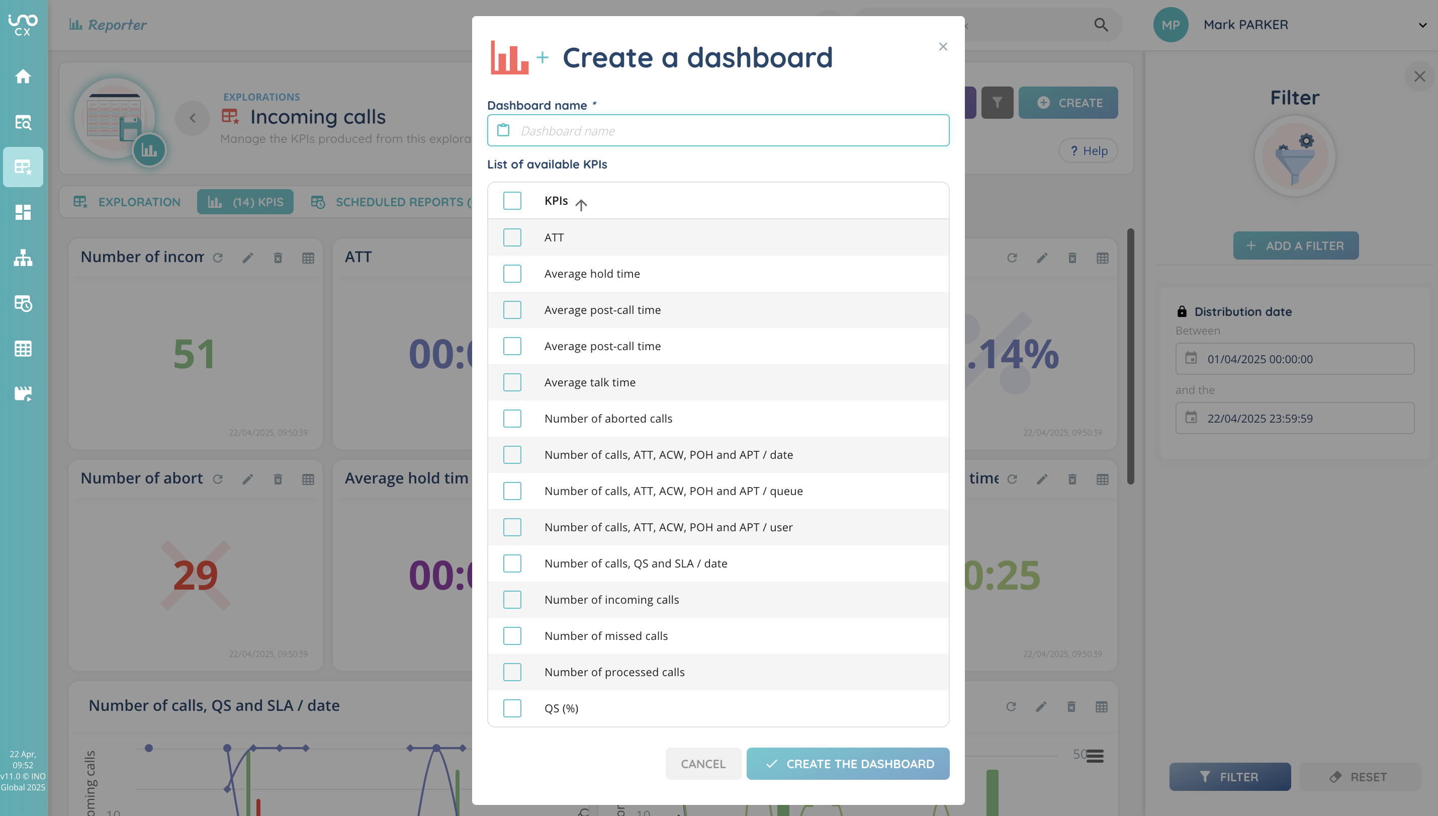 • In an Exploration, under “KPIs” tab, a new button now lets you directly create a dashboard by selecting wanted KPIs from the exploration.