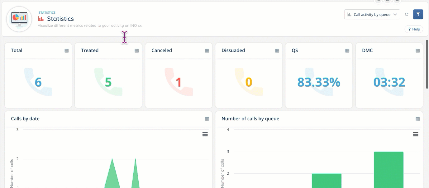 - New “Statistics” tab, which displays a selection of KPIs for your account and those of the users you manage (if you’re a Manager). Accesses are set up in the profile.