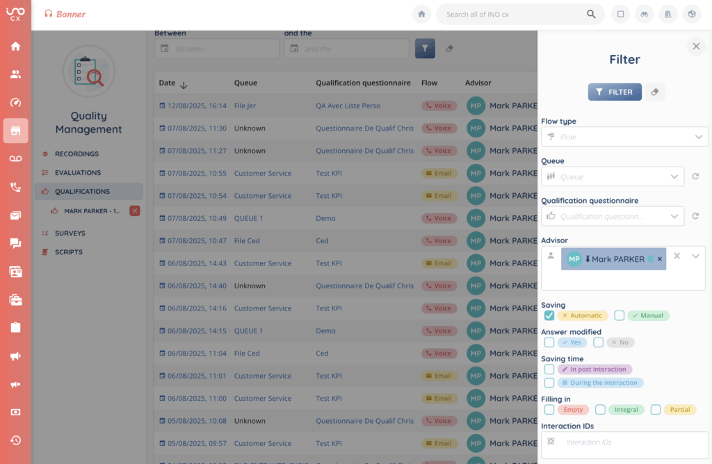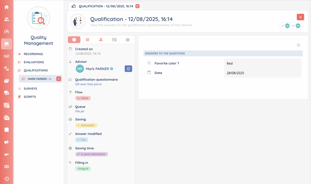 The answers provided by agents to qualification questionnaires can be accessed directly from the Quality Management module in the Banner, under the Qualifications tab.