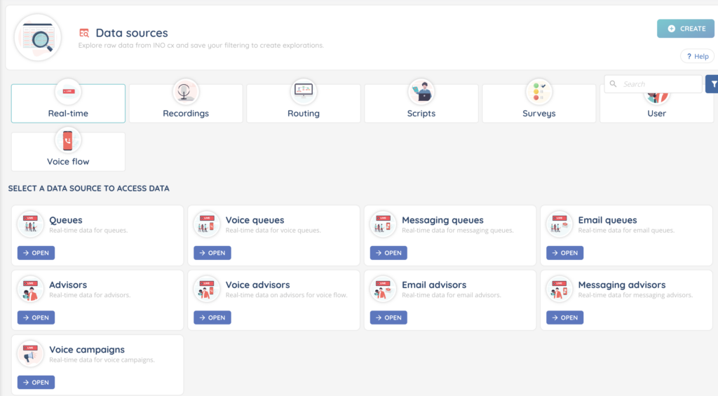 Real-time data sources are available directly from Reporter > Data sources > Real time.