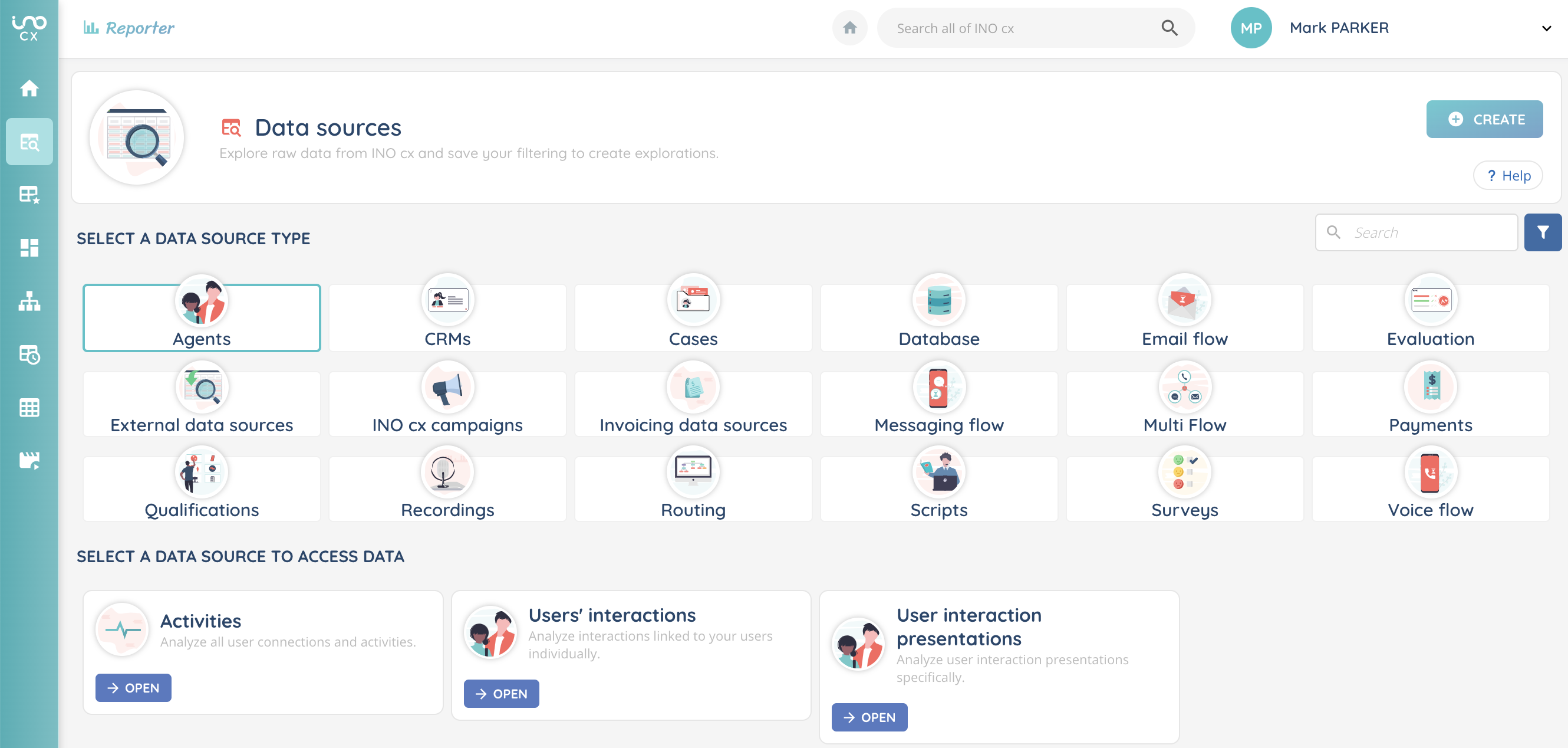 Data sources refer to raw data collected from various interactions or sources. This data is then used to perform analyses and generate reports in the Reporter.