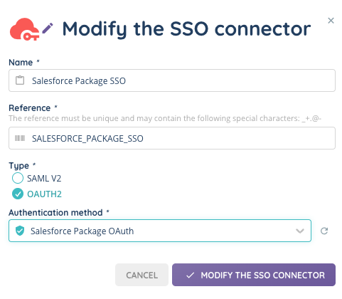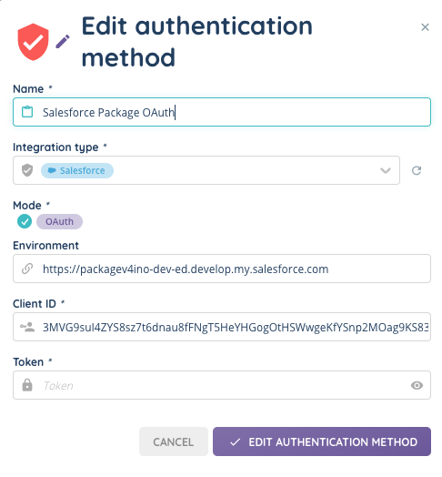 - In INO cx, create a new Authentication Method of type Salesforce.