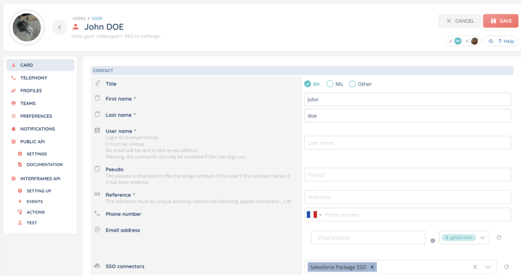 The Salesforce API connector allows you to integrate Salesforce CRM with INO cx.