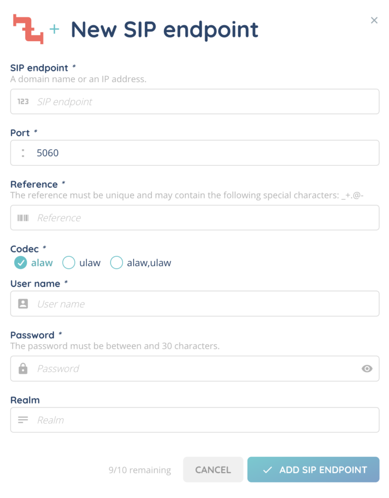 Note: In most cases, SIP trunks are already configured during the initial platform setup. You usually do not need to create additional SIP endpoints.