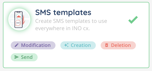 SMS templates allow you to predefine text messages that can be reused in different parts of INO cx.