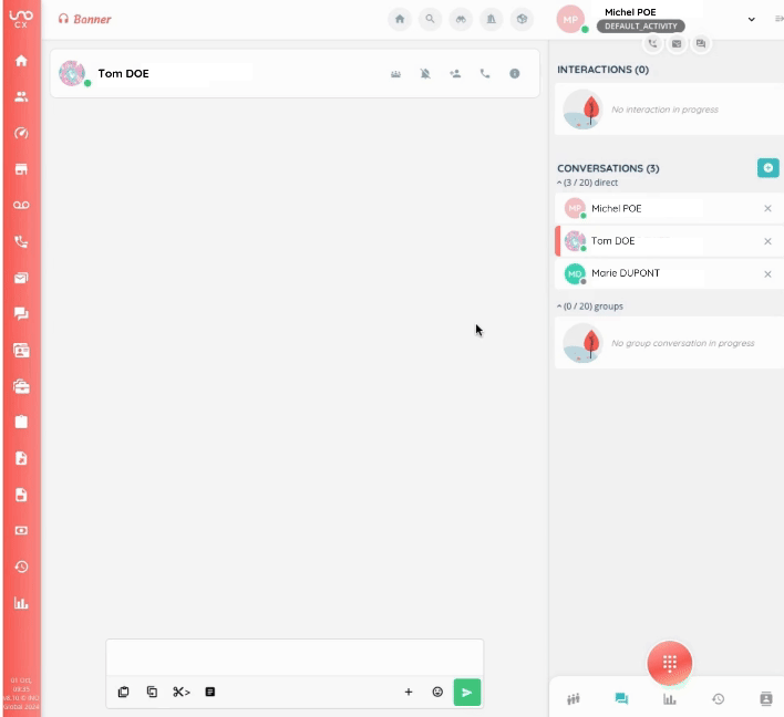 Click on the conversations tab and move your mouse over the small coloured circle to find the status selected by your colleague. You can also find it directly in the conversation with this colleague.