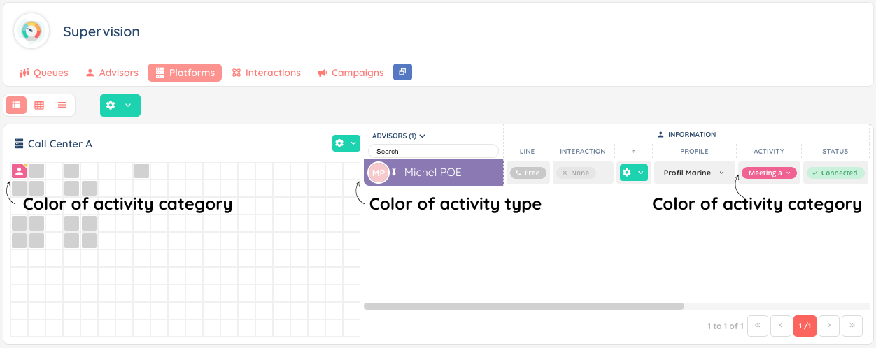Once configured in the Maker, the Platform tab allows supervisors to: