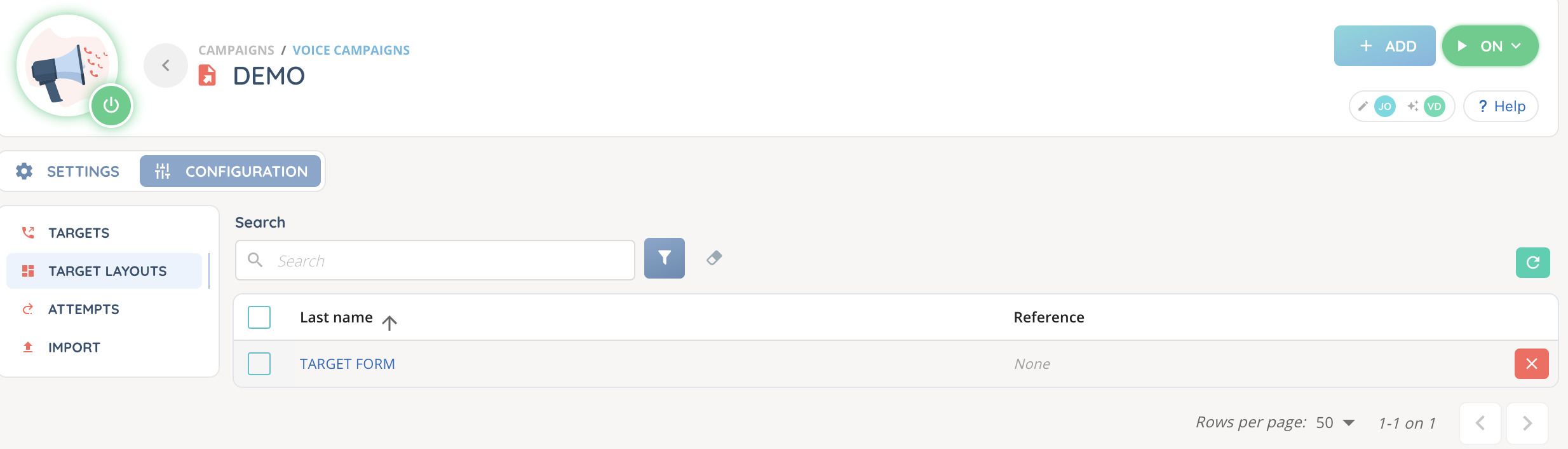 - In the “Configuration” tab of your campaign (voice or SMS).