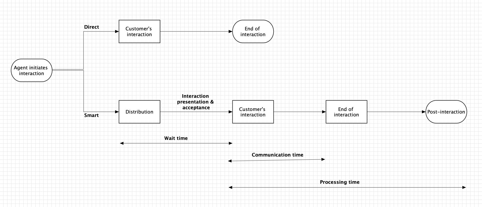 Here are two diagrams for incoming and outbound interactions, with details of when the waiting, communication and post-interaction times start.