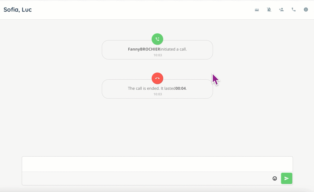 Only accessible if the user has the right to the voice channel, it allows a phone call to a colleague, a superior, or to an external party.