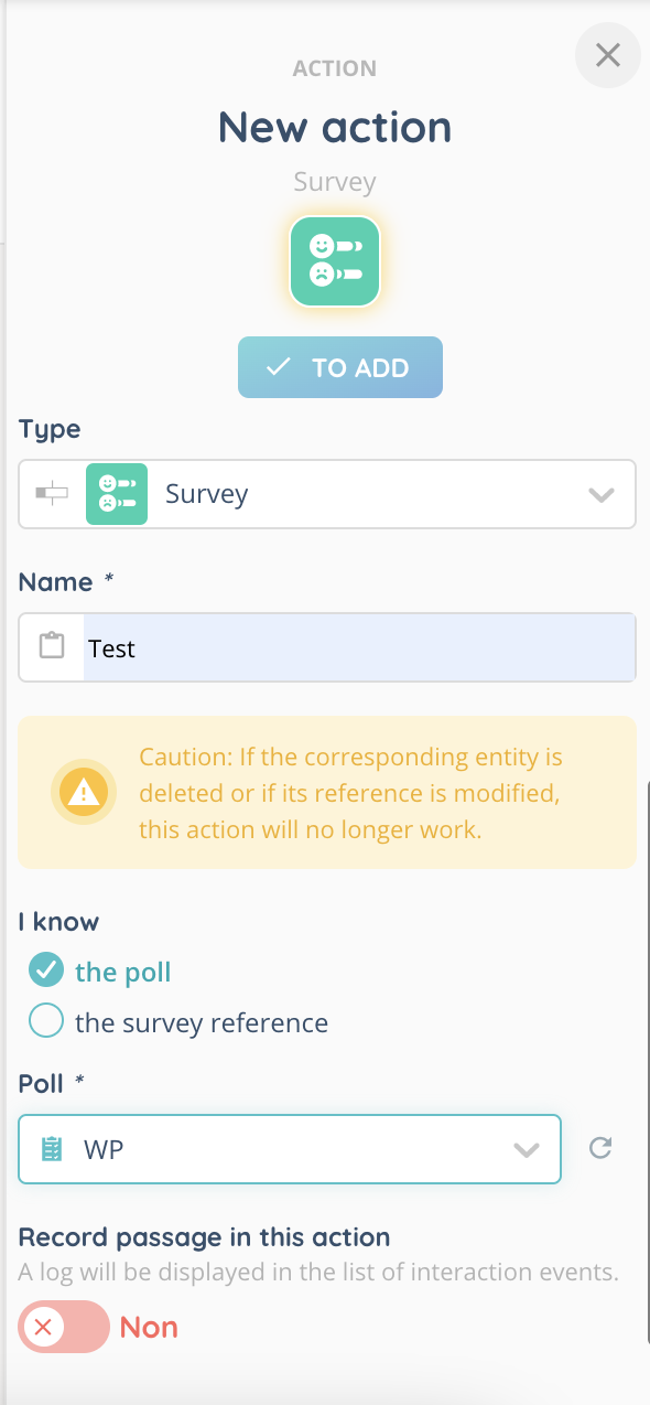 You can add your survey by selecting it in the menu or via its reference.