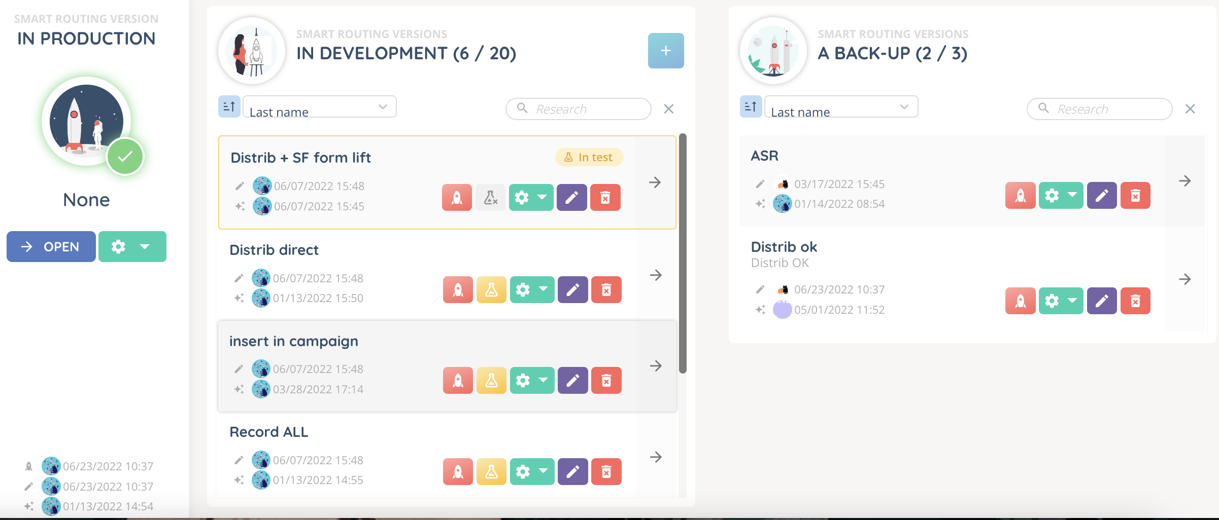 Once a smart routing is created, it is considered to be “in development“, which means that you can modify it.