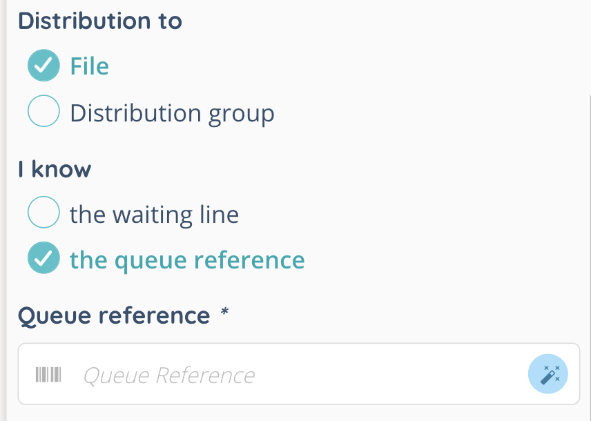 For a number of actions, you will have the choice between the item itself (e.g. a queue) or its reference, which you chose at the time of creation.