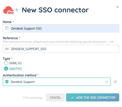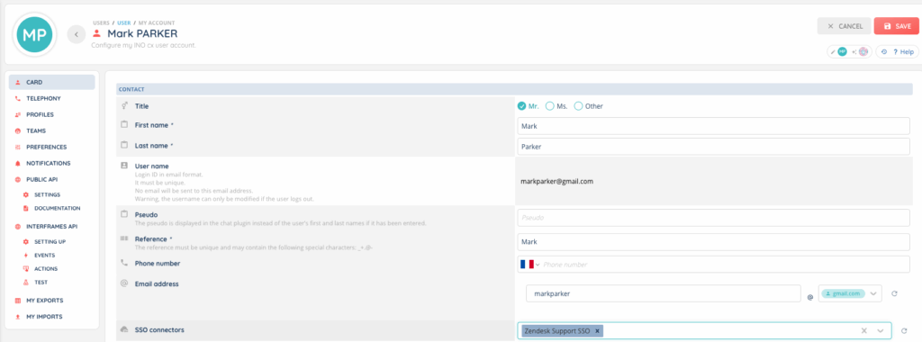 4. Associate the SSO connector with your user to enable you to log in to INO CX directly from your Zendesk Support login.