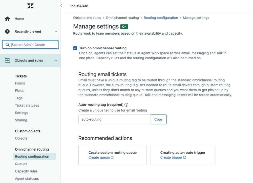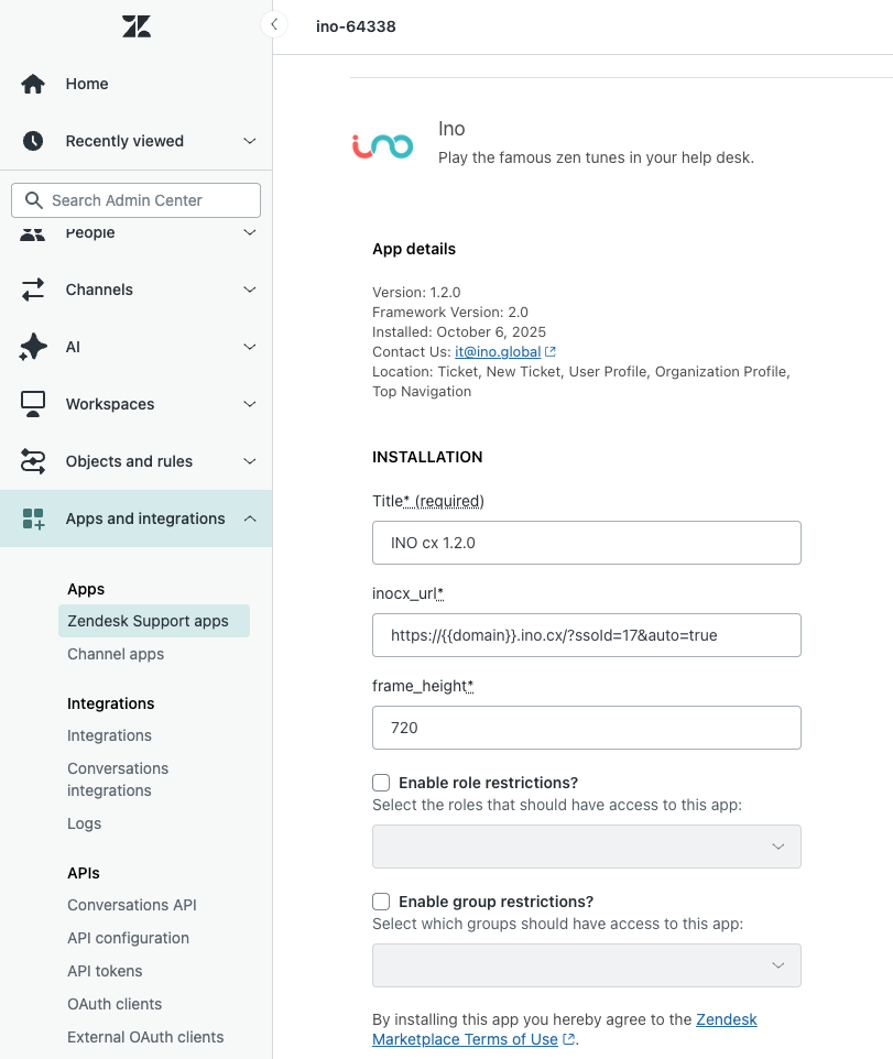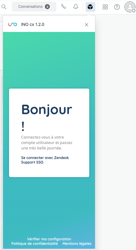 - Open Zendesk Support and launch INO cx from the top bar but will be loaded automatically on the following pages: