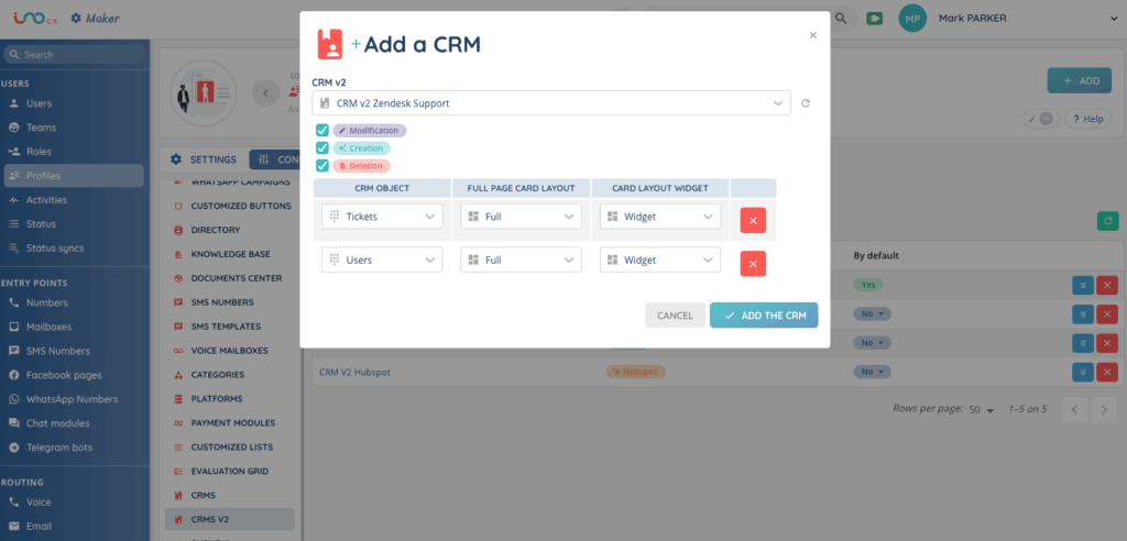 - To make Zendesk Support CRM available in the Banner, associate the CRM v2 with the relevant user profiles.